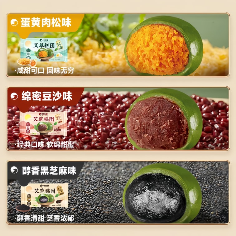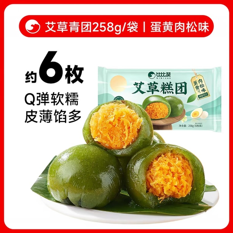 【中国直邮】 比比赞 江南特产艾草青团蛋黄肉松味 258g(6枚)清明时令多口味糯叽叽青粿糯米团子果糕 | 亚米
