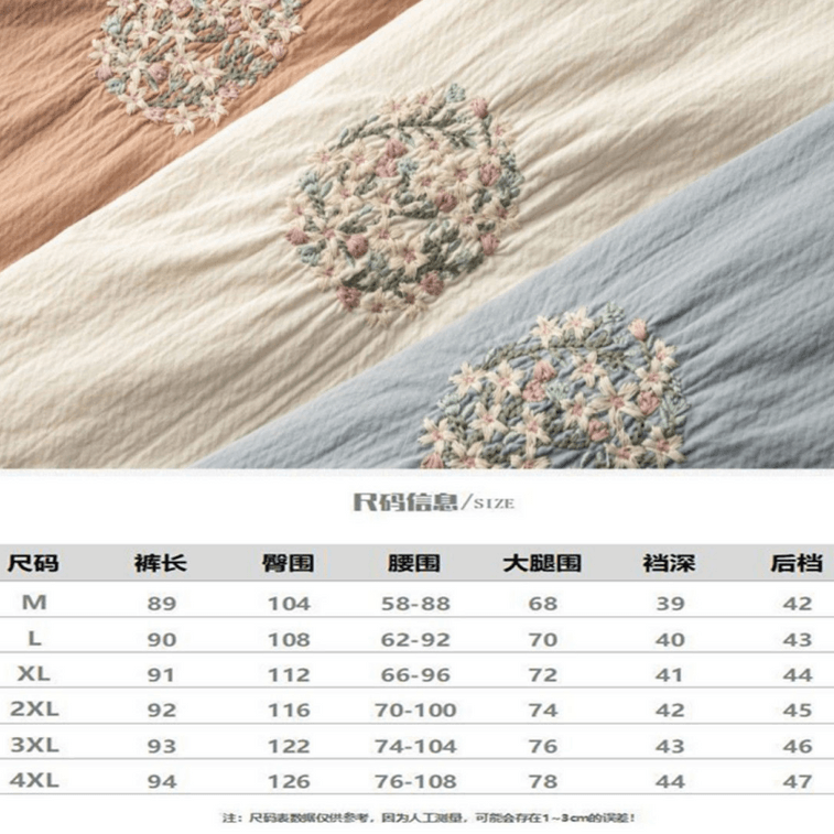 【中国直邮】ASIS棉麻刺绣复古哈伦裤九分休闲裤-卡其色 M