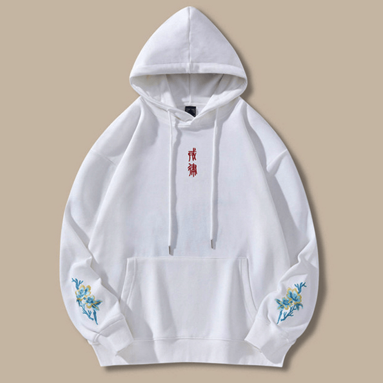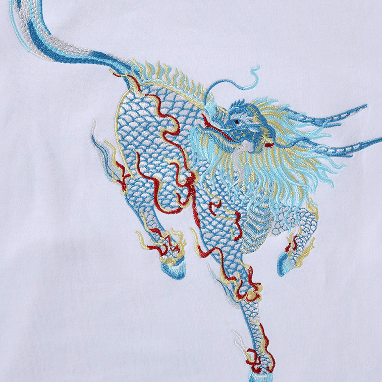 ASIS中国风国潮麒麟刺绣连帽宽松卫衣-白色 XL