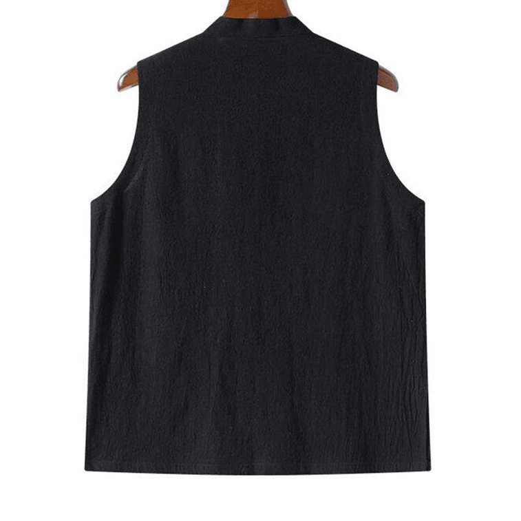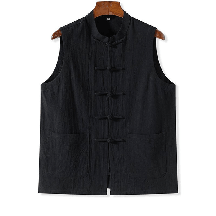 【中国直邮】 ASIS 新中式男士棉麻薄款盘扣唐装马甲-黑色 M | 亚米