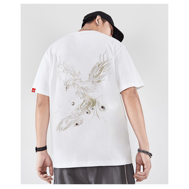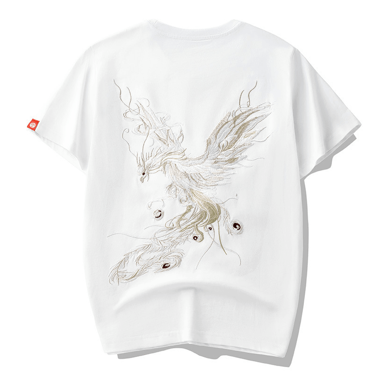 ASIS国潮中国风男装凤凰刺绣短袖T恤 白色 M