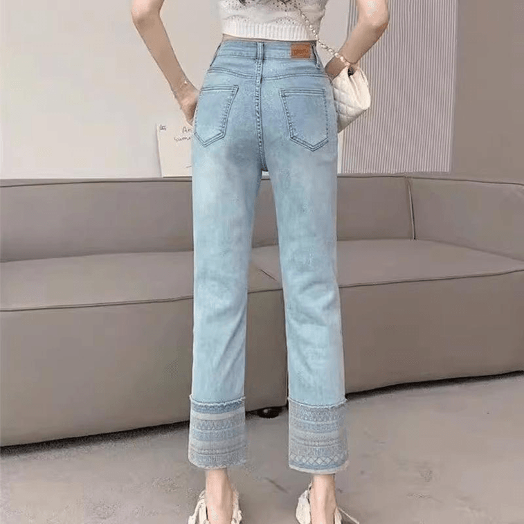 【中国直邮】 ASIS 风复古印花拼接九分牛仔裤直筒裤 2XL
