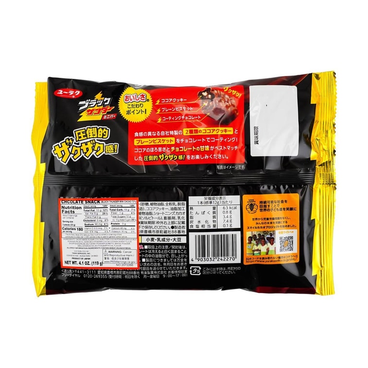 日本YURAKU有乐制果 黑雷神迷你巧克力棒 曲奇威化饼干 158g