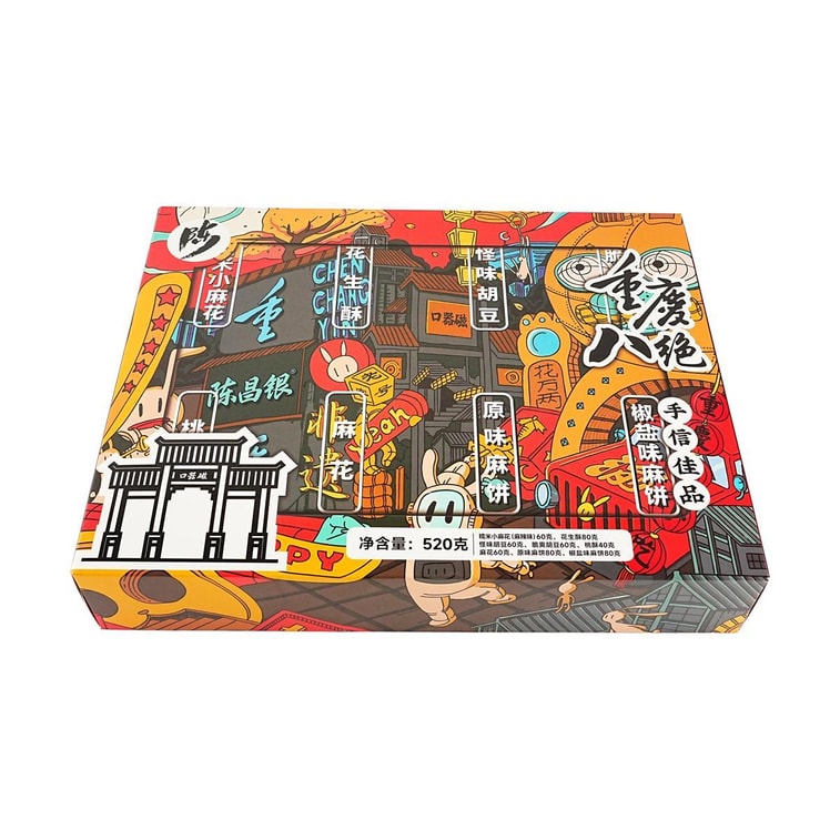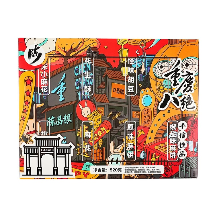 陈昌银 重庆八绝 零食礼盒 520g【春节年货礼盒】【麻花桃酥怪味胡豆花生酥麻饼】