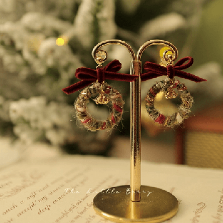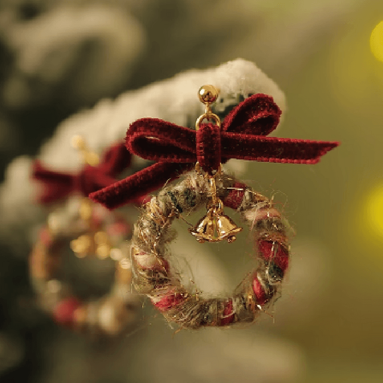 食颜派 红色蝴蝶结毛绒耳环【把冬日花环戴在耳畔 精致感一键拉满!】
