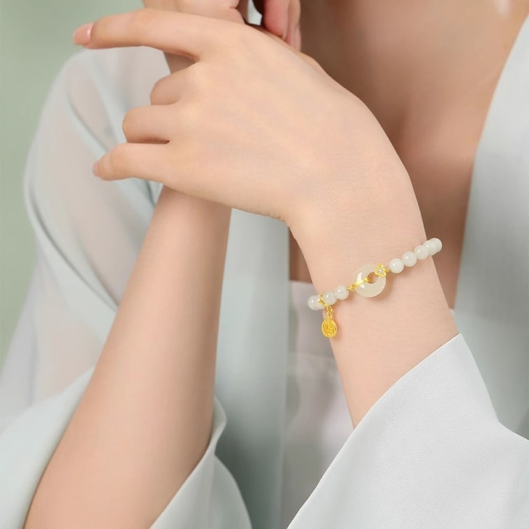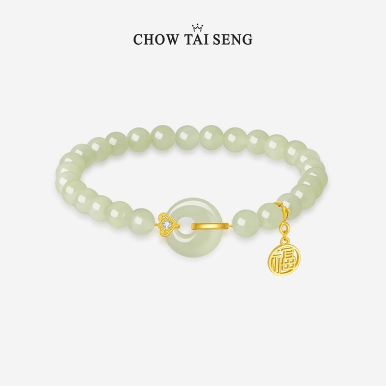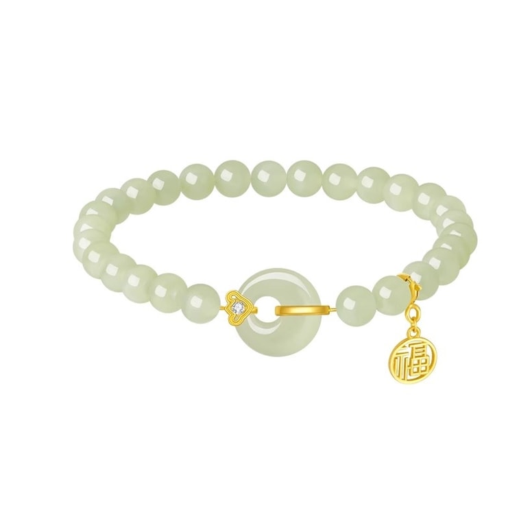 【中国直邮】 周大生 出水福蓉和田玉手串福气平安扣国风手链银 1个装 | 亚米