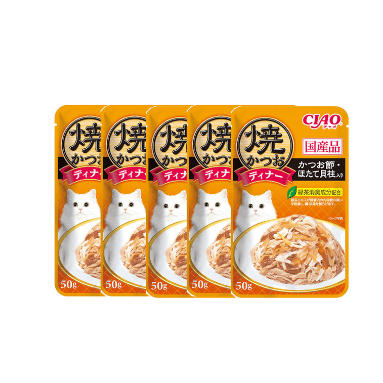日本 INABA 伊纳宝 CIAO 猫零食湿粮 风味烤肉餐包 烤鲣鱼+鲣鱼节+扇贝 50g 5袋装