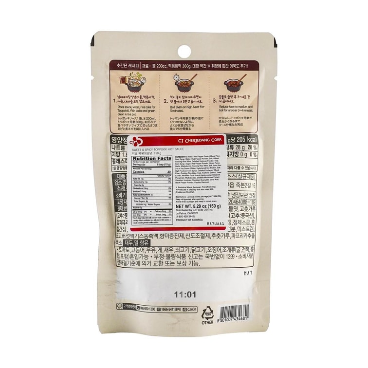 韩国CJ希杰 韩式甜辣炒年糕酱 150g
