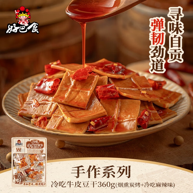 【中国直邮】 好巴食 手作冷吃牛皮豆干(混合味)360g/袋慢卤入味韧性劲道休闲零食 | 亚米