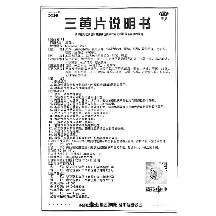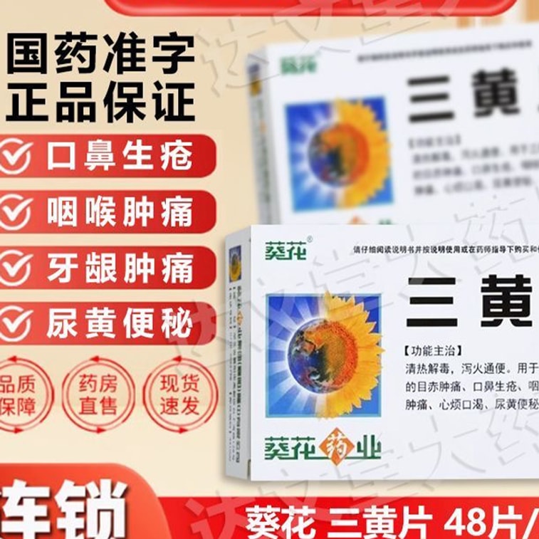 葵花药业 三黄片 48片 清热解毒 泻火通便 口鼻生疮 咽喉肿痛 牙龈肿痛 心烦口渴 尿黄便秘