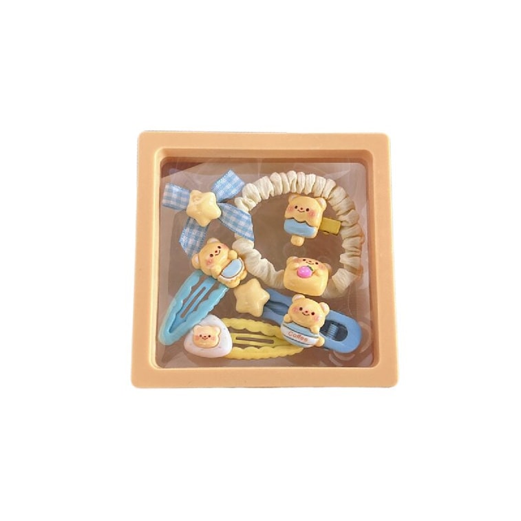 食颜派 卡子套组B黄油小熊组合 【可爱奶黄小熊系列 发饰组合 少女甜美 碎发刘海夹 高弹力发绳】