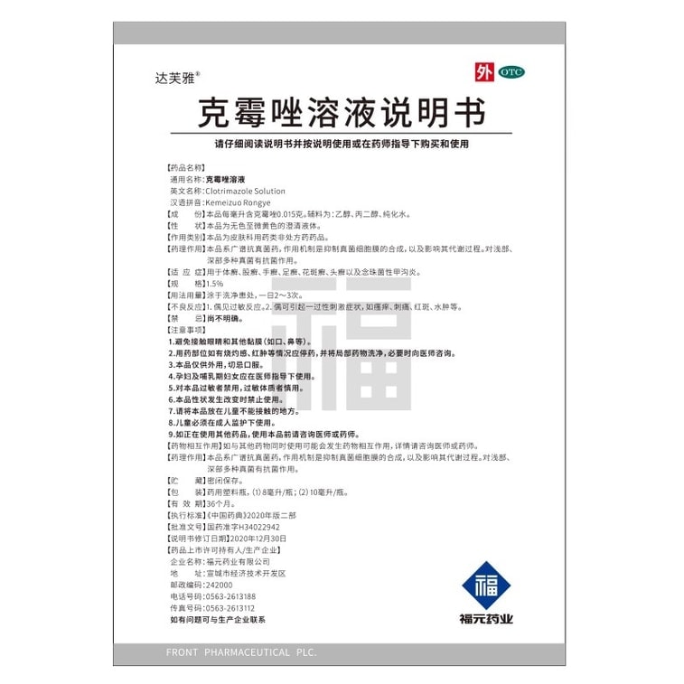 【中国直邮】 福元药业 克霉唑溶液 抑制真菌 杀菌止痒 甲沟炎灰指甲脚气止痒脱皮杀菌专用药 8ml/瓶
