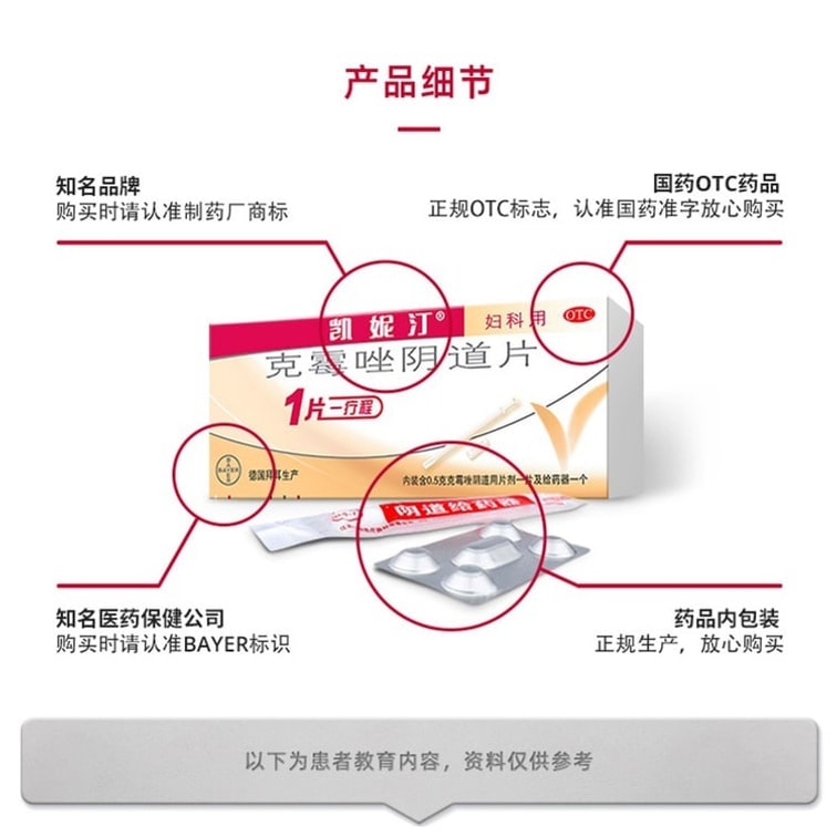 【中国直邮】 凯妮汀 克霉唑阴道片 阴道炎 妇科炎症专用药 一盒一片一疗程 1盒装