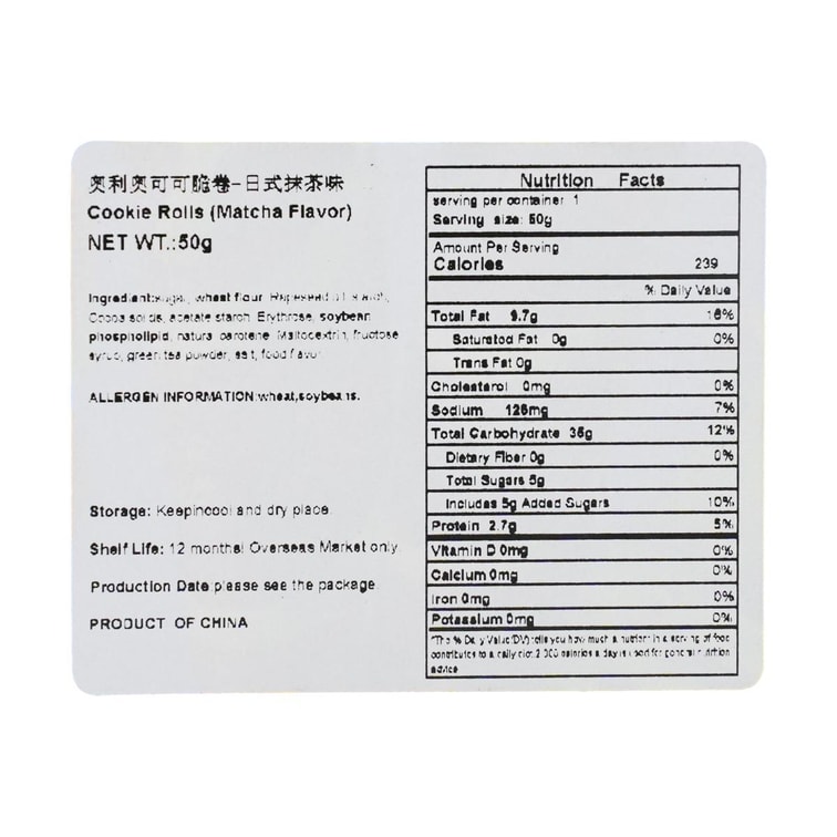 大陆版奥利奥 可可脆卷 威化饼干蛋卷 日式抹茶味 50g