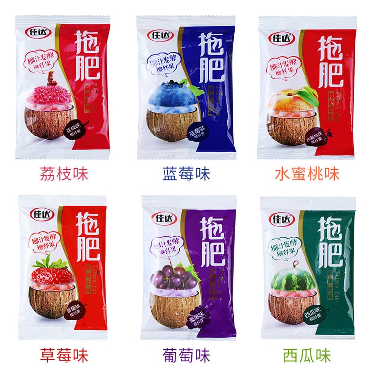 【中国直邮】 佳达 拖肥 椰果肉 混合果味 蓝莓/水蜜桃/西瓜味/荔枝/葡萄/草莓味 儿时怀旧果冻饮料 椰果粒儿童小零食【浓郁香甜 果肉耐嚼】 35g*10包