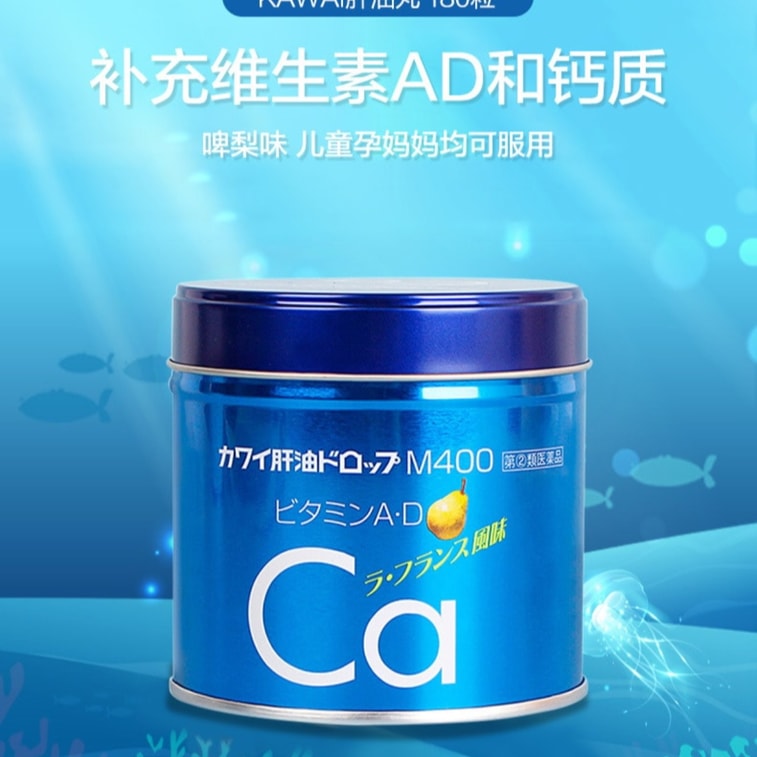 【香港直邮】 日本 KAWAI 川合】鱼肝油钙丸180粒蓝罐 维A+维D+钙三效合一 儿童成人护眼强骨 梨味易吞服