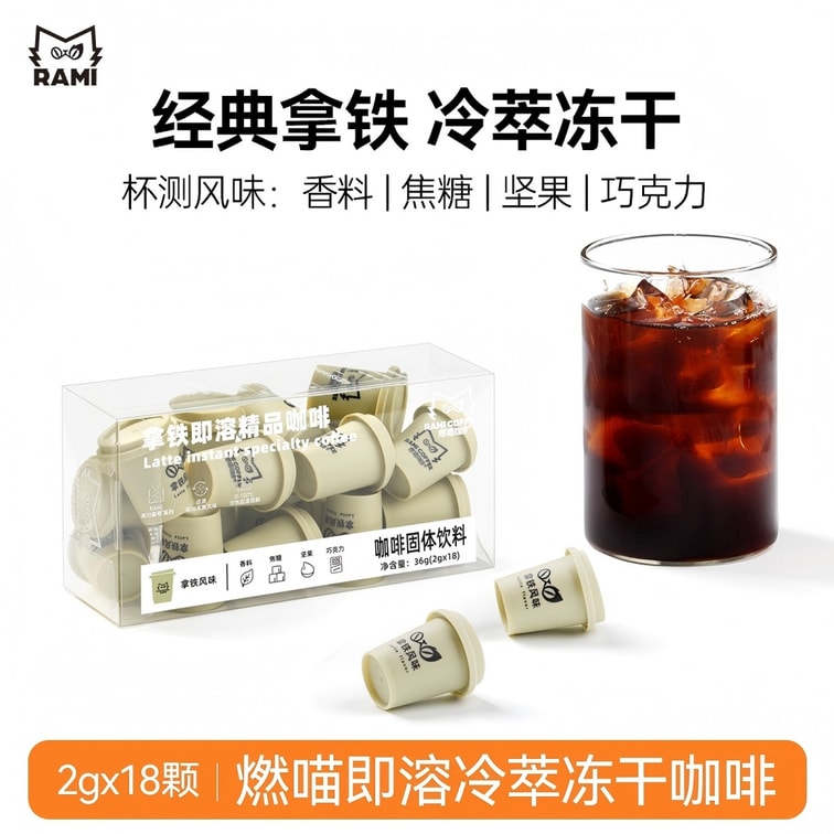 燃喵 冷萃冻干即溶纯黑咖啡 拿铁风味 中度烘焙 18颗装 36g【防困提神 0脂无蔗糖】