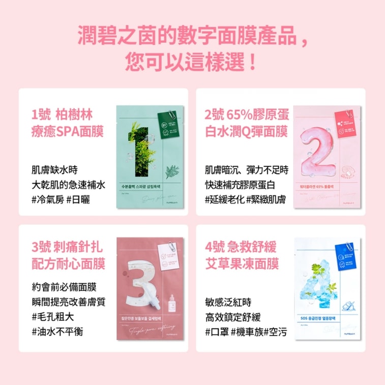 【香港直邮】 韩国 Numbuzin 数字面膜 No.2 胶原蛋白水润弹力面膜 4pc 即刻饱满·深层滋养·弹润升级