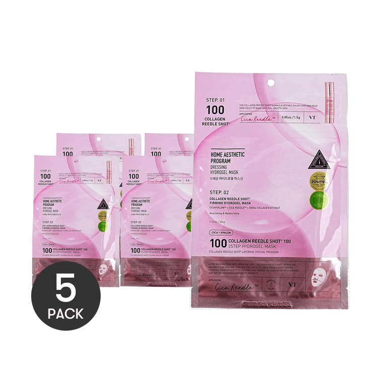 韩国VT 胶原蛋白积雪草微针精华100 2步曲水凝胶面膜 5片入 可过夜密集嘭弹护理 抗皱弹力 保湿光泽 温和不刺激