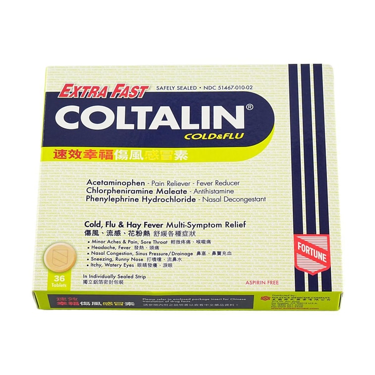 香港幸福医药 幸福伤风感冒素 B1维生素打喷嚏流鼻涕喉咙痛鼻敏感收鼻水发烧 抗过敏 36片 【速效版】