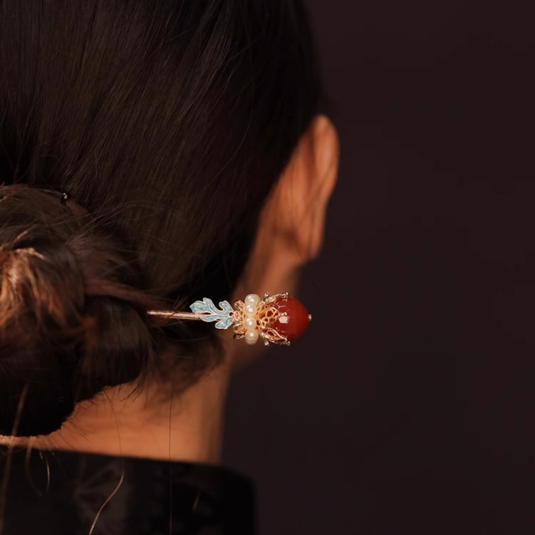 【绾韵祈安】新中式烤蓝红色旗袍发簪 手工古风盘发金属流苏簪子 日常百搭 高级感汉服头饰