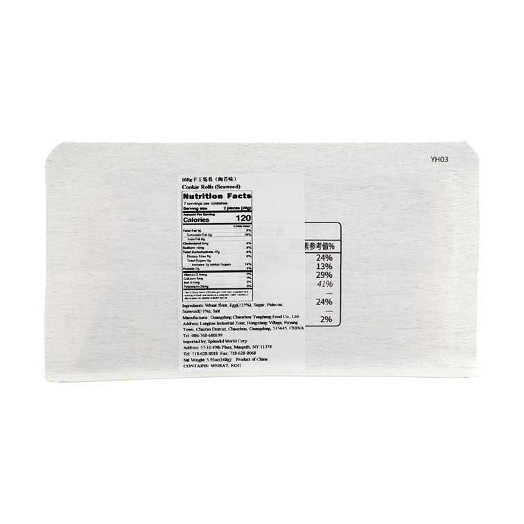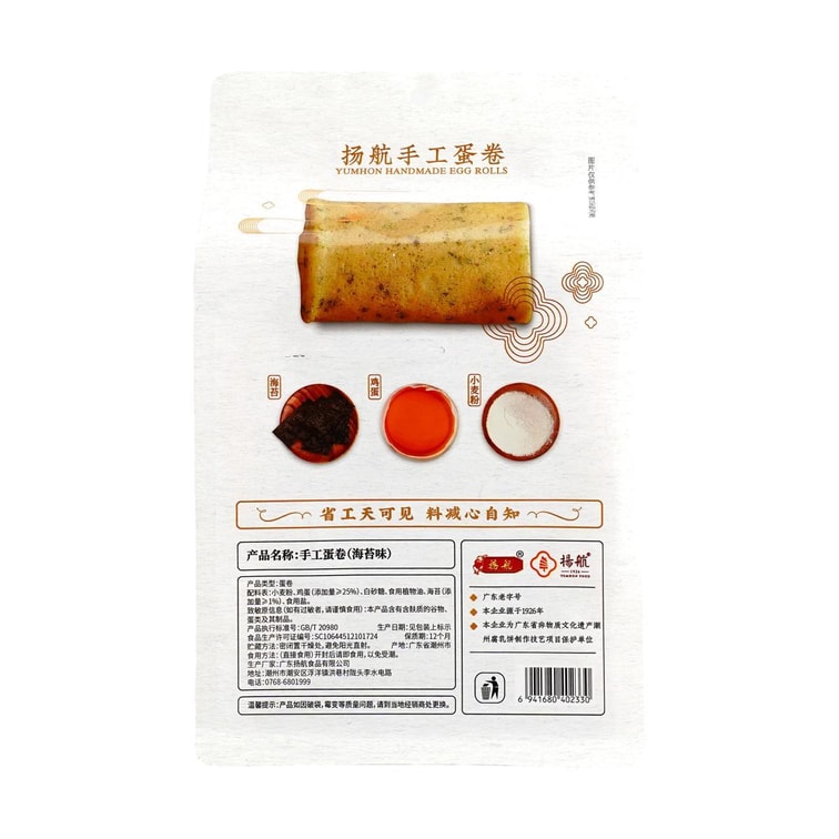 扬航 手工蛋卷 海苔味 168g【广东老字号】