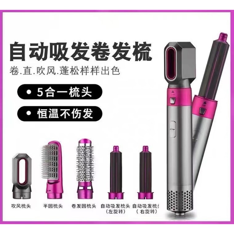 中国直邮 Coopever 5合1热风梳自动卷发棒 卷直两用 美发造型梳电吹风 玫瑰金