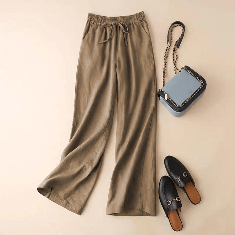 中国 ASIS文艺棉麻高腰休闲直筒裤-卡棕色 3XL