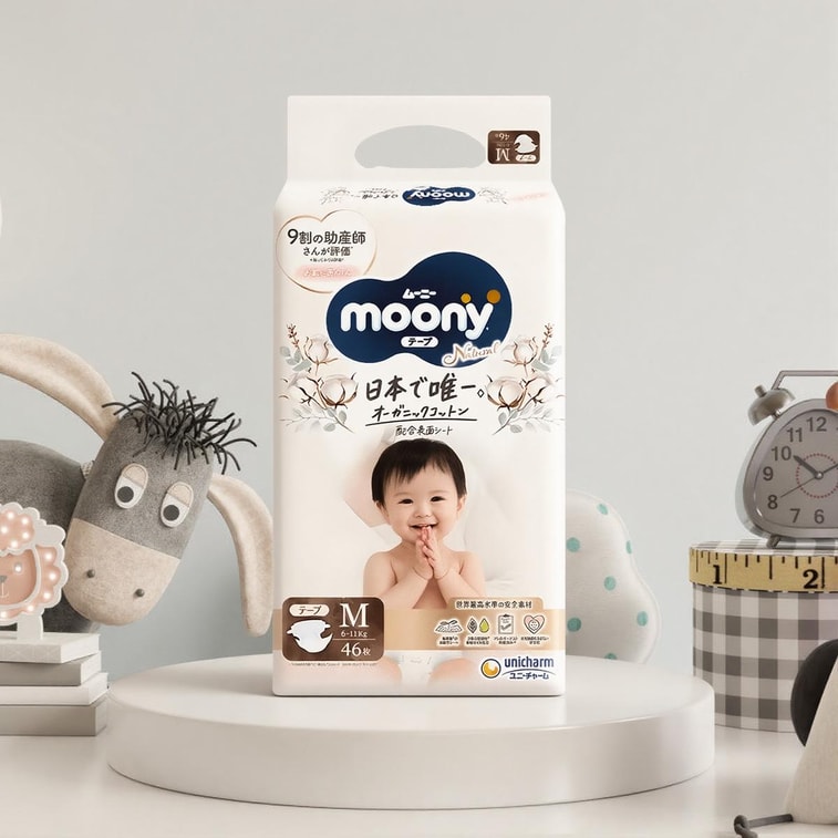 日本MOONY尤妮佳 尿不湿尿布 M号 6-11kg 46枚 男女通用 皇家系列臻粹有机自然棉 婴儿腰贴纸尿裤
