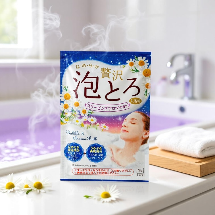 日本COW牛乳石鹸共进社 胶原美肌浓密泡泡入浴剂浴盐 #洋甘菊香 紫色汤 透明质酸 30g