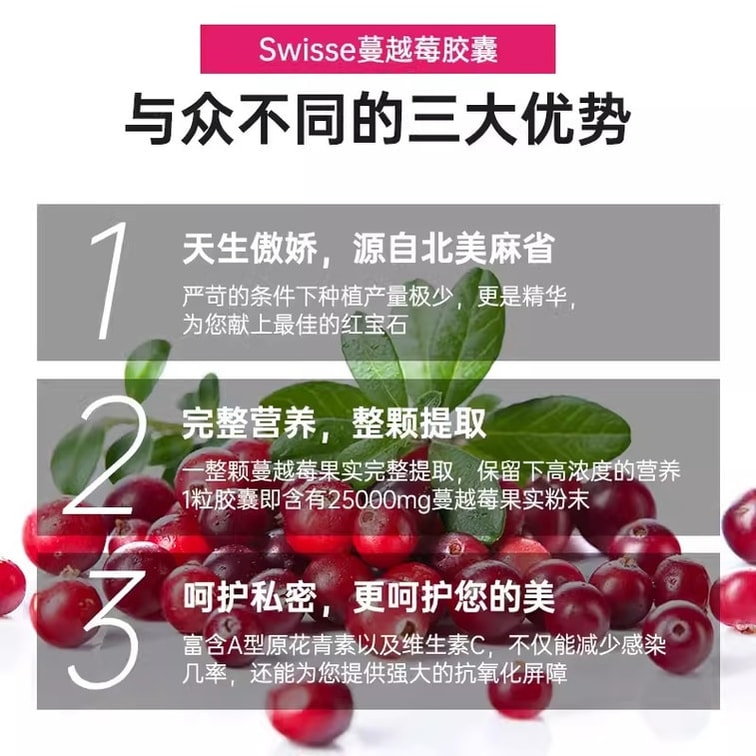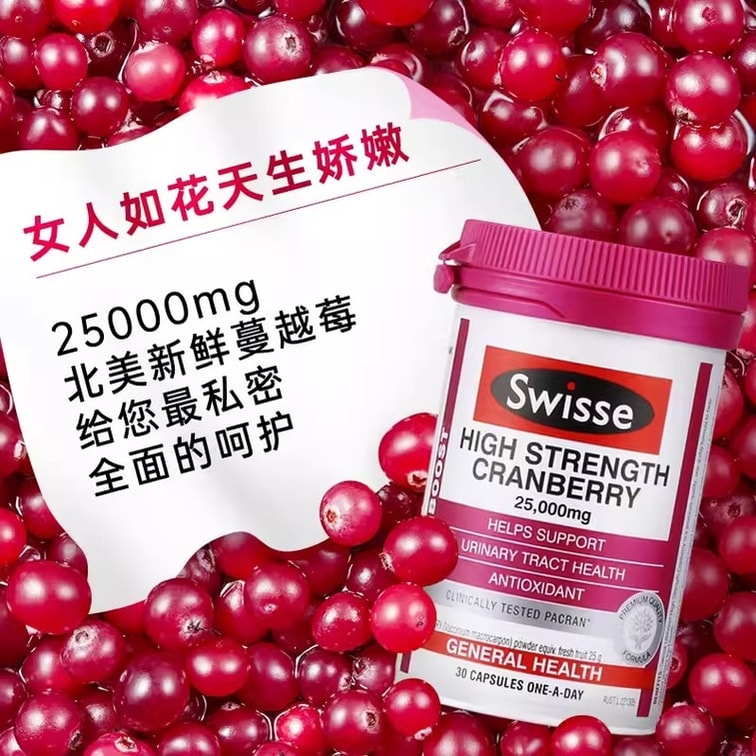 【中国直邮】 澳大利亚 Swisse 澳洲 蔓越莓胶囊 女性保养保护卵巢保健品 呵护女性泌尿健康 30粒/瓶
