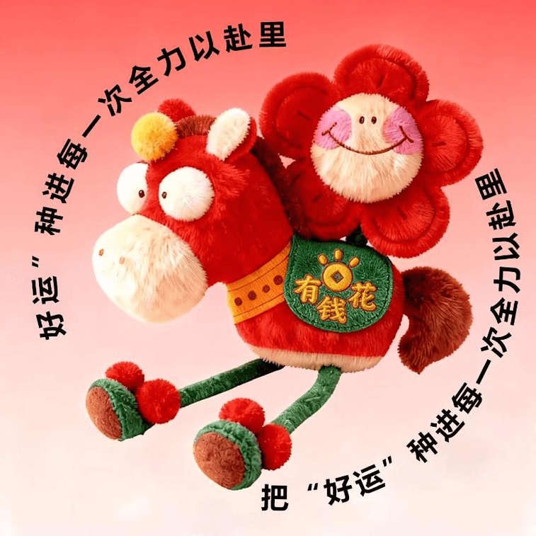 【中国直邮】 翰正 创意新年礼物马年玩偶钥匙小挂件公仔马上有钱花16cm*1个