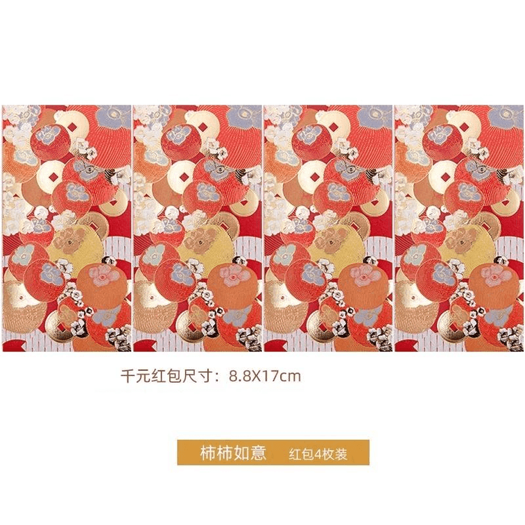 【中国直邮】 中国美院 美院 美院创意新年千元大红包生日结婚红包柿柿如意8.8*17cm*4个