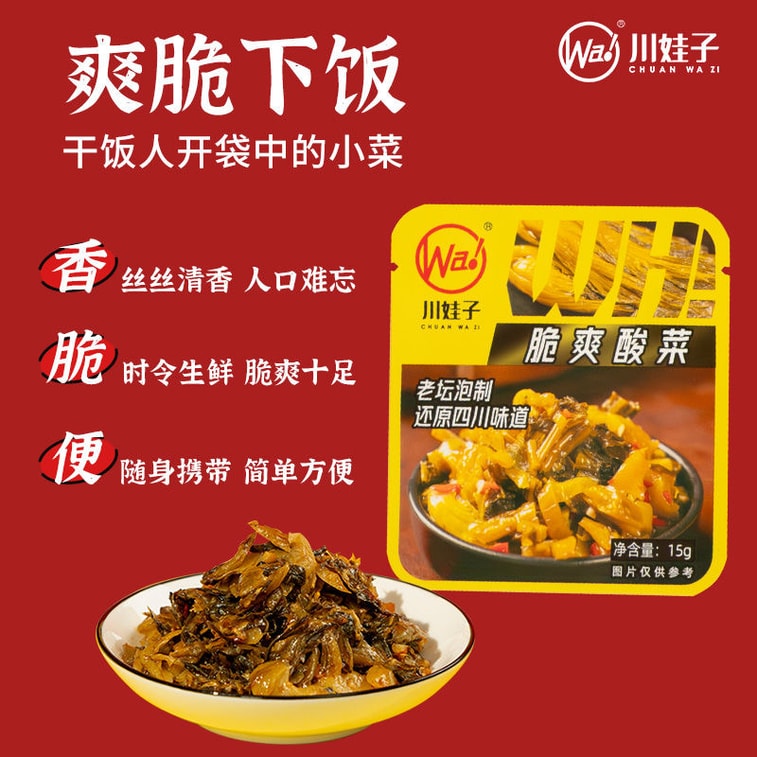 川娃子 【春季大促】爽口酸菜 老坛泡酸菜 开袋即食下饭菜 泡菜小袋便携装15g*15袋 | 亚米