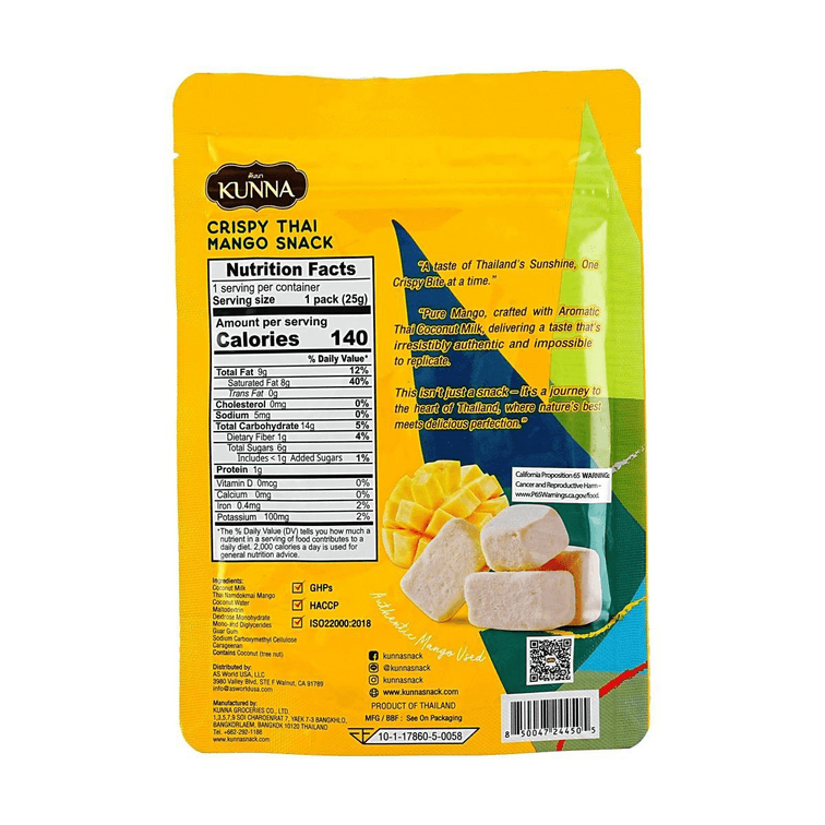 泰国KUNNA康纳 椰子冻干 椰子糖 芒果味 25g【小红书人气推荐】【蔡文静同款】