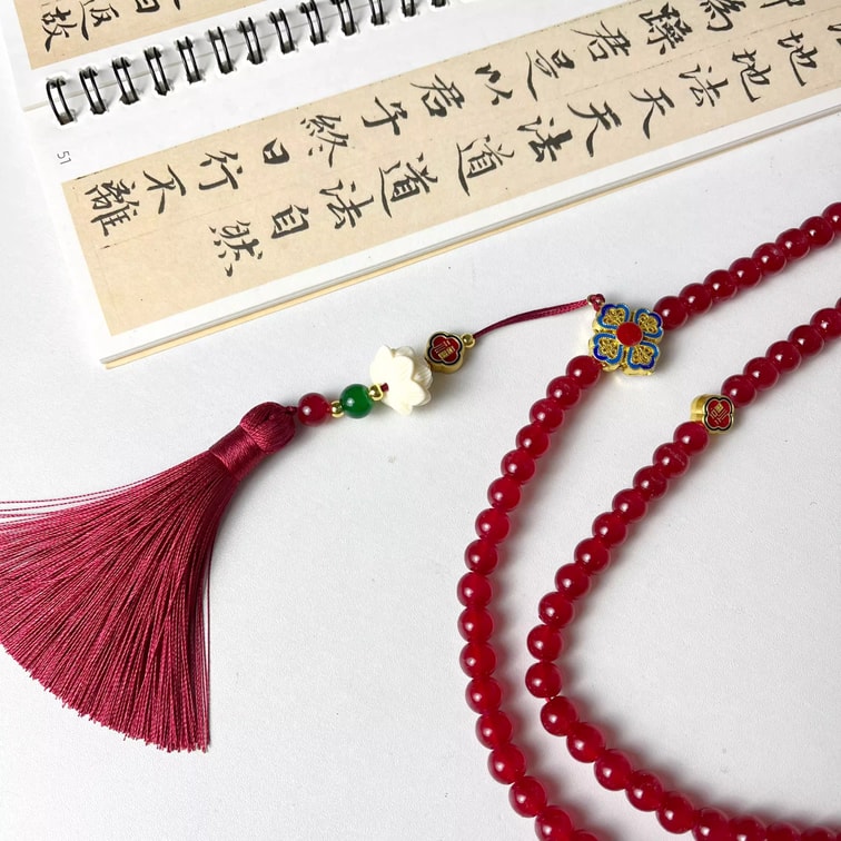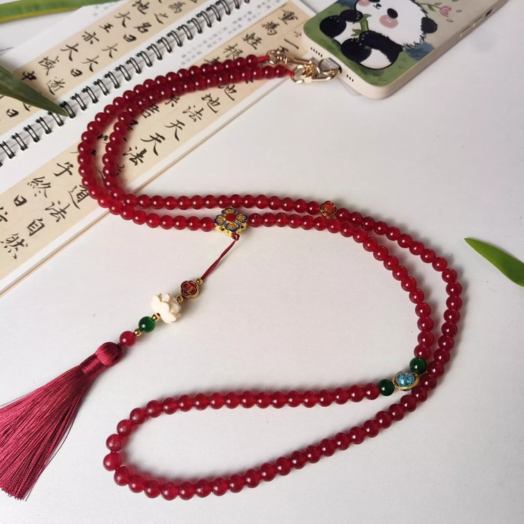 【平安好运】新中式风莲花手机链 红色斜挎挂绳 防丢便携百搭背包配饰 120cm
