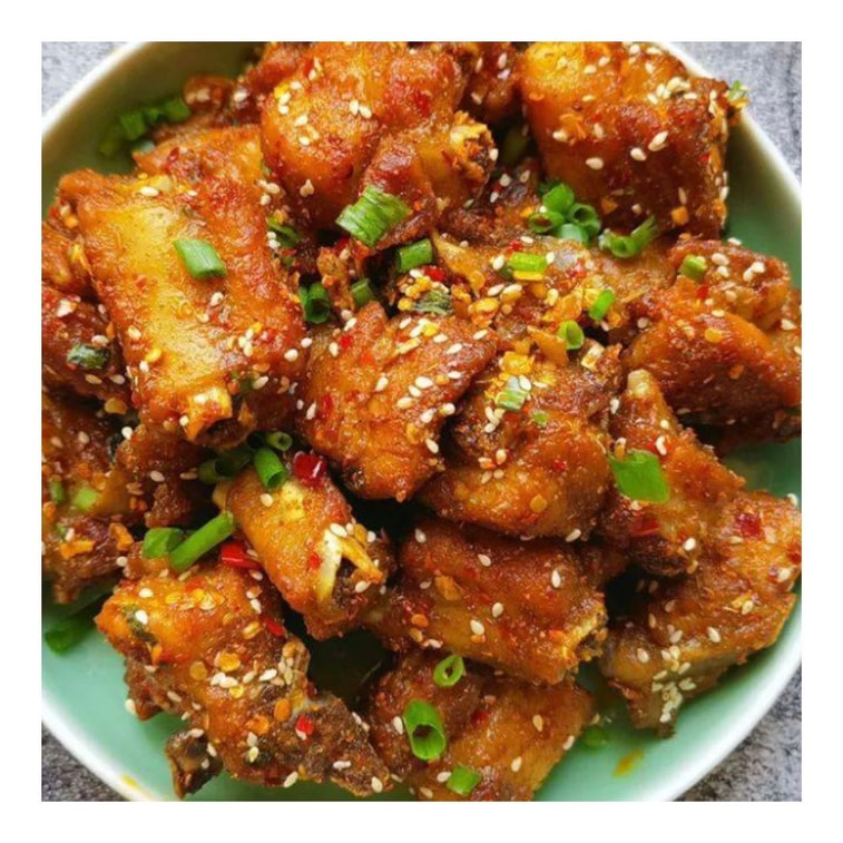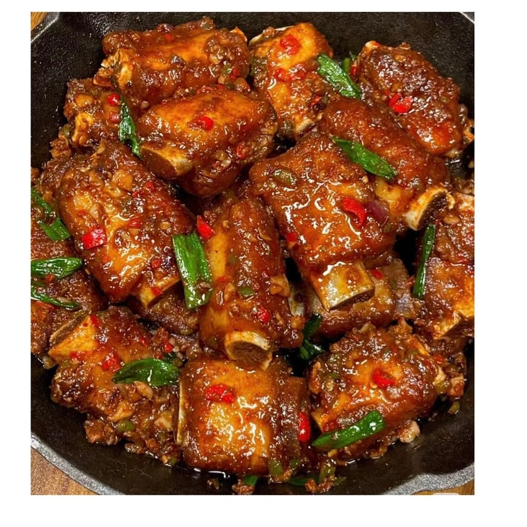 Pork ribs, cumin powder, chili powder, onion, olive oil, salt
