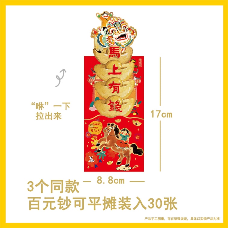 【中国直邮】 HSPM 儿童新年红包2026马年萌可爱卡通抽拉礼金袋 马上有钱-抽拉款(3个/包)