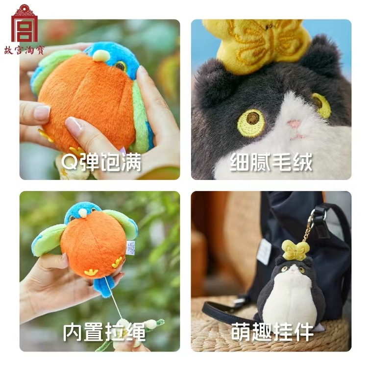 【中国直邮】 故宫淘宝 肥啾萌猫毛绒钥匙扣 包包挂件 情侣玩偶 生日礼物/拉绳驱动/金属挂链/桌面装饰-胖鸟款 1个*|预计到达时间3-4周