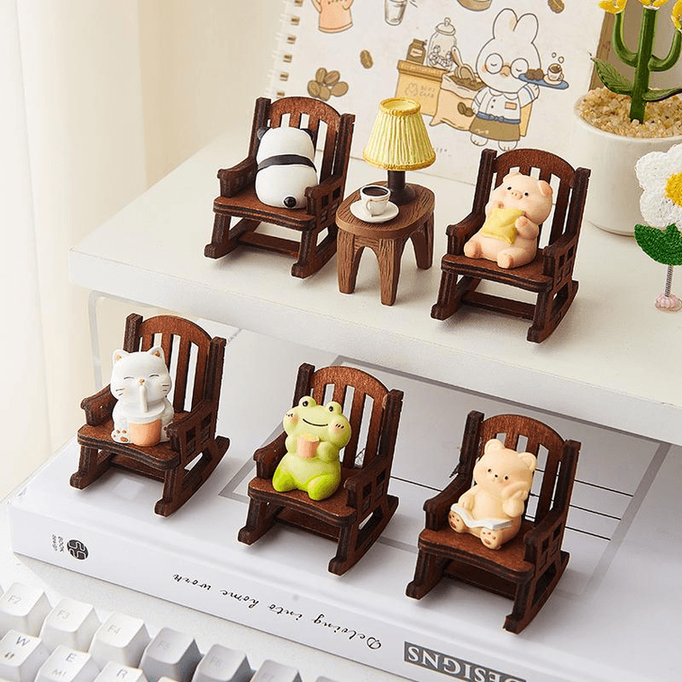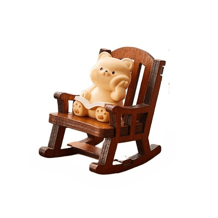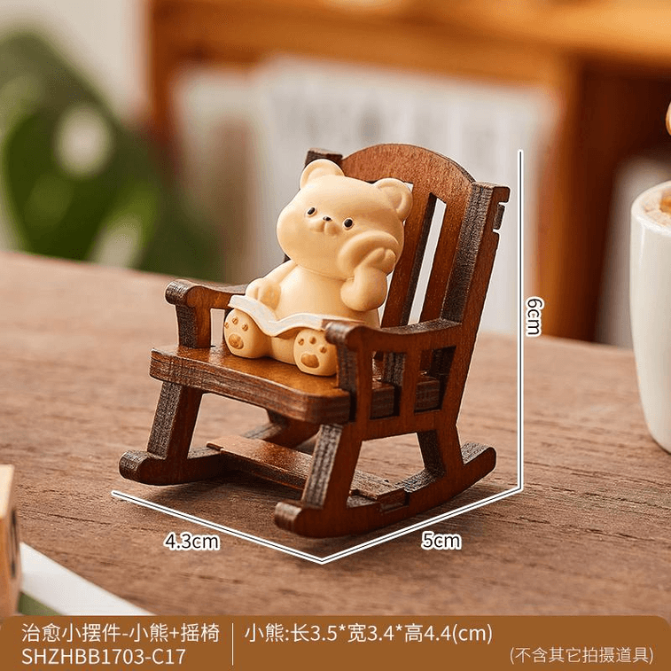 【中国直邮】 在玩 可爱治愈解压小摆件办公室桌面装饰 发呆小熊+摇摇椅 5*6*4.3cm