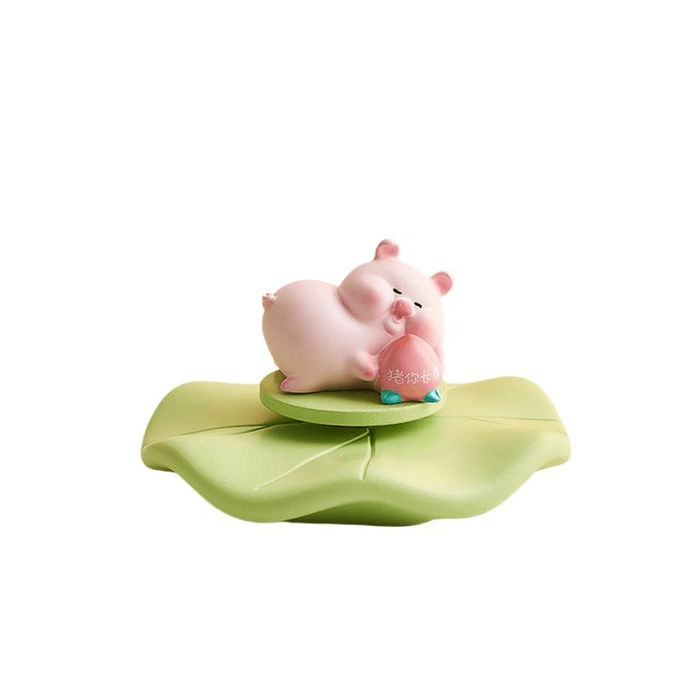 【中国直邮】 在玩 可爱小猪摆件旋转解压摆件 猪你长寿 荷叶底座4.8*8.6cm