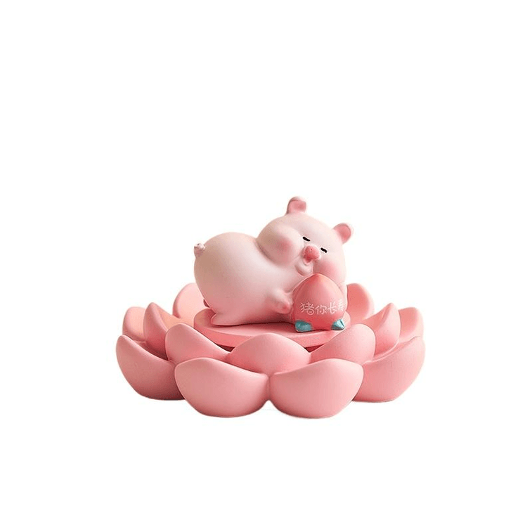 【中国直邮】 在玩 可爱小猪摆件旋转解压摆件 猪你长寿 莲花底座7.7*4.3cm