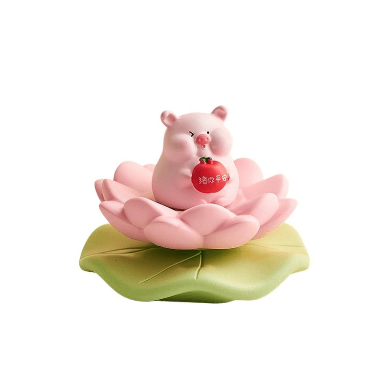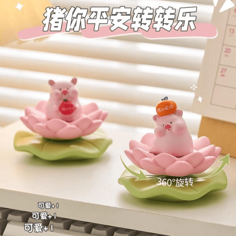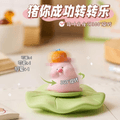 【中国直邮】 在玩 可爱小猪摆件旋转解压摆件 猪你平安 荷叶底座8.6*6.5cm