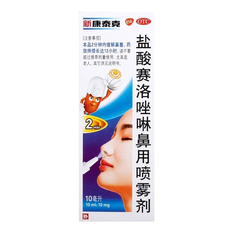 【中国直邮】 新康泰克 盐酸赛洛唑啉鼻用喷雾剂 过敏性鼻塞鼻炎药急慢性鼻炎10ml/盒