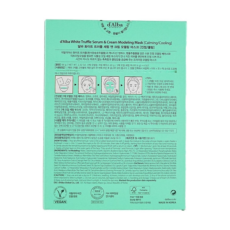 韩国D'ALBA黛尔珀 白松露精华乳霜塑形面膜 4套装 #舒缓降温