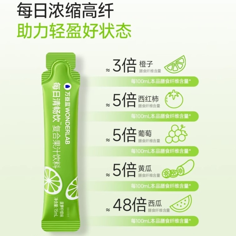 【中国直邮】 WONDERLAB 万益蓝 每日清畅饮15ml*30条/盒 膳食纤维益生元果蔬0脂正品