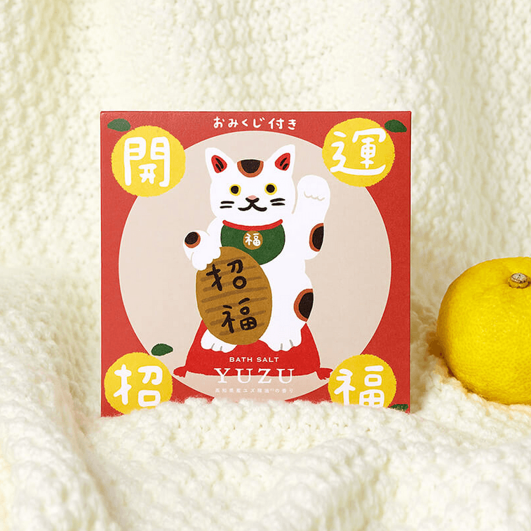 一种带着好运的浴盐,充满你的心灵和皮肤,散发着“招手猫”的香气,还有吉祥的柚子,吸引好运。由台东设计师村Yukino设计的香氛招呼猫×柚子。这款浴盐能让你的身心充满“招手猫”和吉祥柚子的气息,带来好运,还有100%天然柚子精油的清新清新香气。 浴时含4种美肤成分,滋润肌肤,用算命温暖你的心灵。内袋允许你直接把它放进浴缸,无需打开袋子。 柚子皮不会弄脏,你可以轻松在家享受正宗柚子浴。