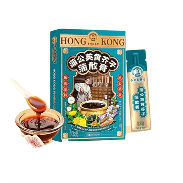【中国直邮】 香港制药堂 蒲公英黄芥子蒲散膏10g*20袋/盒 人参佛手非遗古法熬制内调养生膏茯苓昆布(建议3盒周期装)