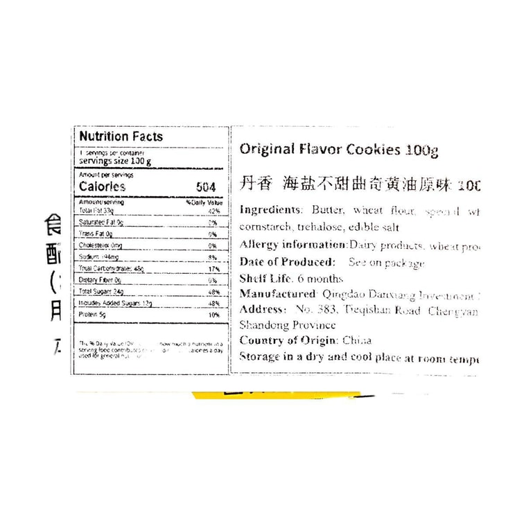 丹香 海盐不甜曲奇饼干 100g【纯动物黄油制作 酥香醇厚】【配料干净0添加剂】【亚米独家】