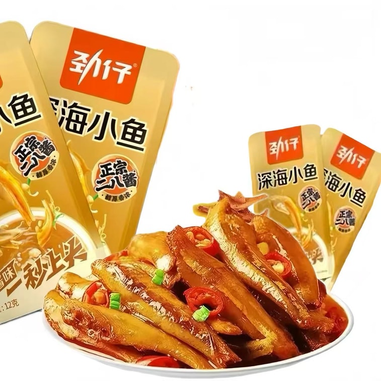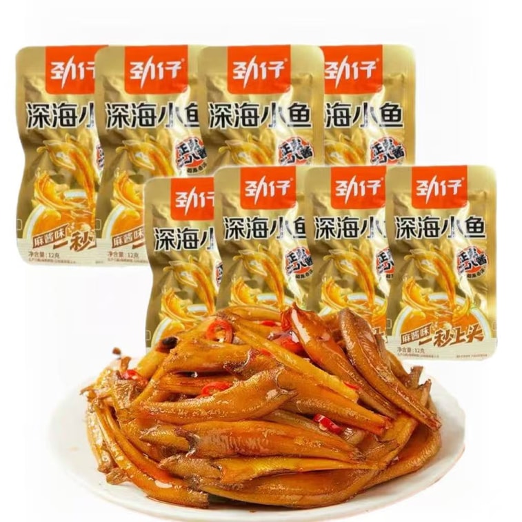 劲仔 一秒上头 正宗二八酱 深海小鱼干 麻酱味 慢卤入味 唇齿留香 12g*8袋 甄选优质海鱼 精选天然优质香料